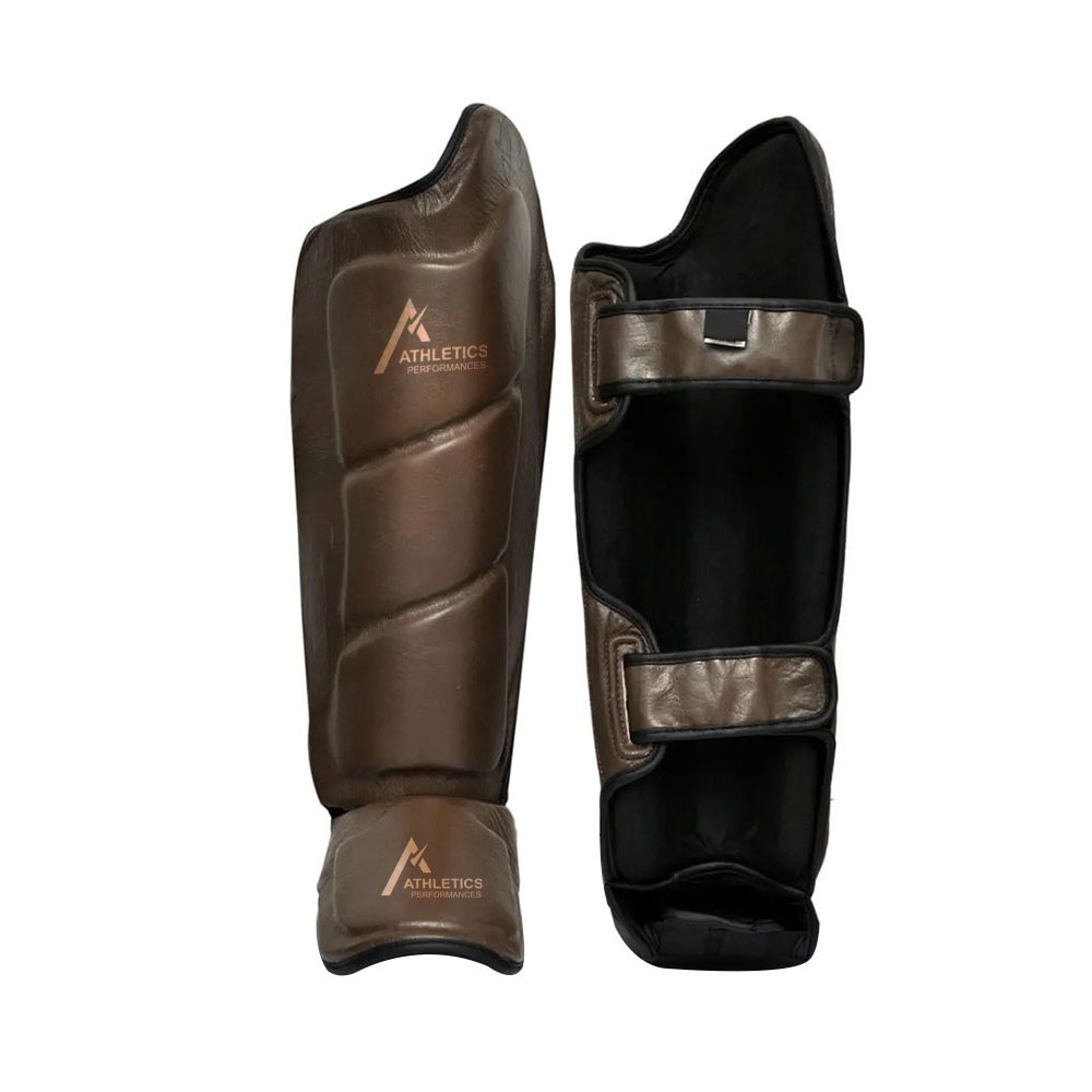 Boxing shin pads are manufactured using durable genuine or high-grade synthetic leather for long-lasting performance.