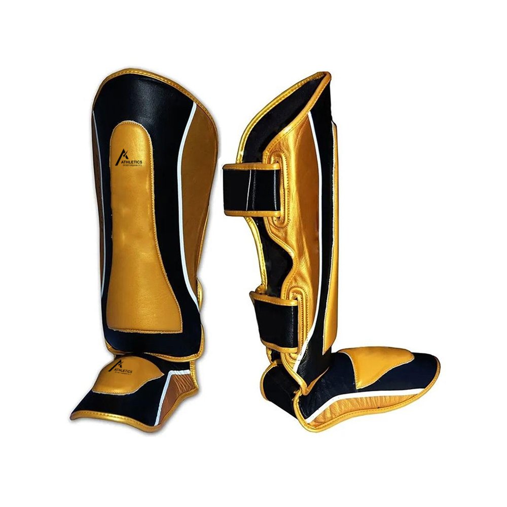 Boxing shin pads are manufactured using durable genuine or high-grade synthetic leather for long-lasting performance.