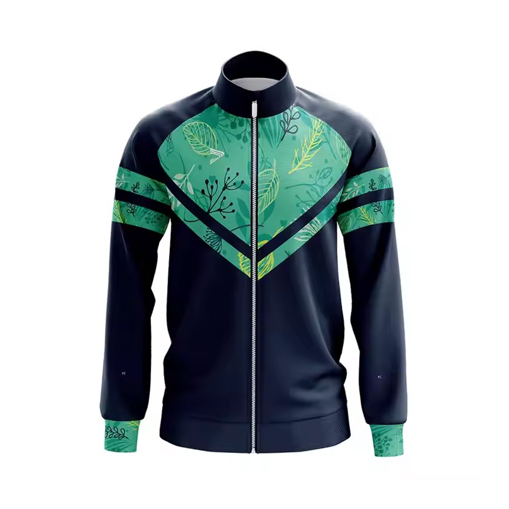 A gym jacket is a lightweight, breathable upper garment designed for workout sessions and athletic activities. It typically features a full-zip front for easy wear, made from moisture-wicking fabrics like polyester or spandex to keep the wearer dry. The design often includes stretchable panels or mesh inserts for ventilation and mobility, with a fitted or slightly loose cut for comfort. Available in vibrant or team colors with sporty patterns, it may have pockets and elastic cuffs. Gym jackets are ideal for warm-ups, cool-downs, or light exercise.