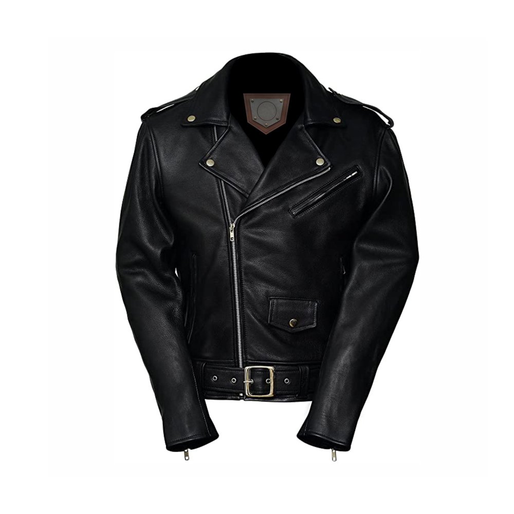 A leather jacket is typically made from high-quality animal hide, such as cow or lamb, offering durability and a classic rugged look. It features a fitted design with a front zipper or button closure, often including multiple pockets for practicality. The material provides natural insulation and weather resistance, making it suitable for various seasons. Available in styles like bomber, biker, or racer, it often includes details like quilted shoulders or studs. Leather jackets are prized for their timeless style and ability to age gracefully with wear.
