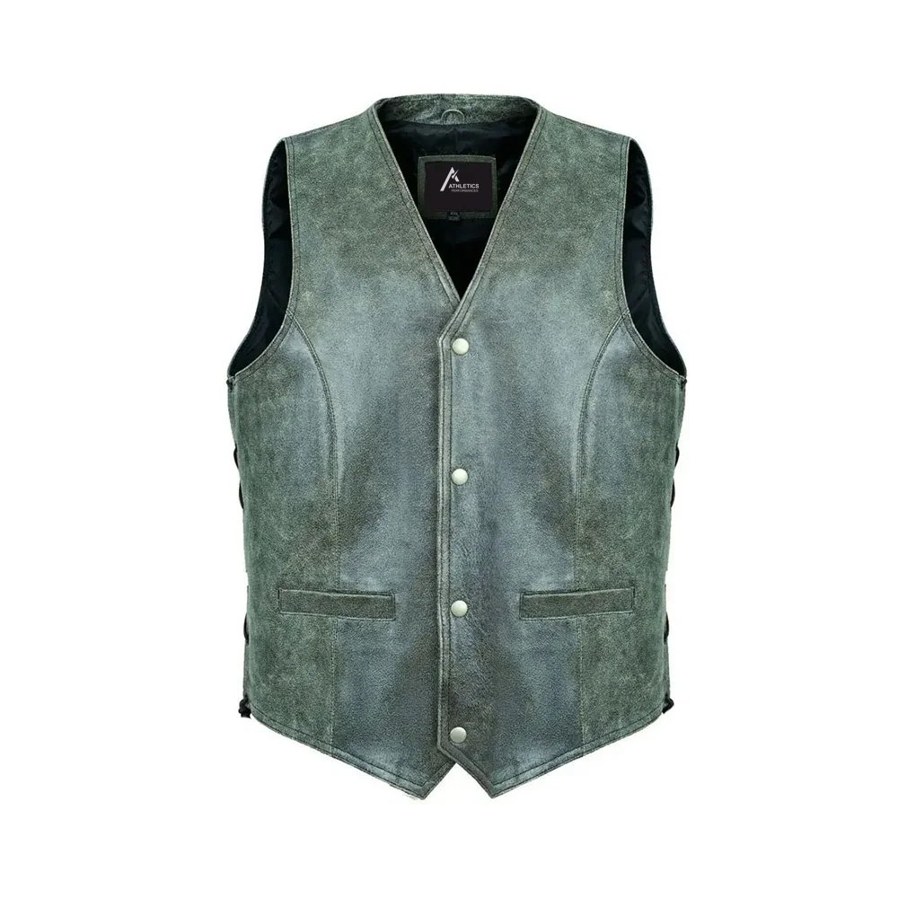 A leather vest is a sleeveless upper garment made from durable leather, such as cowhide or buffalo hide, known for its rugged and versatile style. It features a fitted design with front snap or zipper closures, often including pockets for practicality. The material offers natural insulation and abrasion resistance, making it popular for motorcycle gear or casual wear. Available in styles like biker or classic, it may have quilted detailing or lace-up sides for customization. Leather vests are prized for their timeless appeal and ability to age gracefully with use.