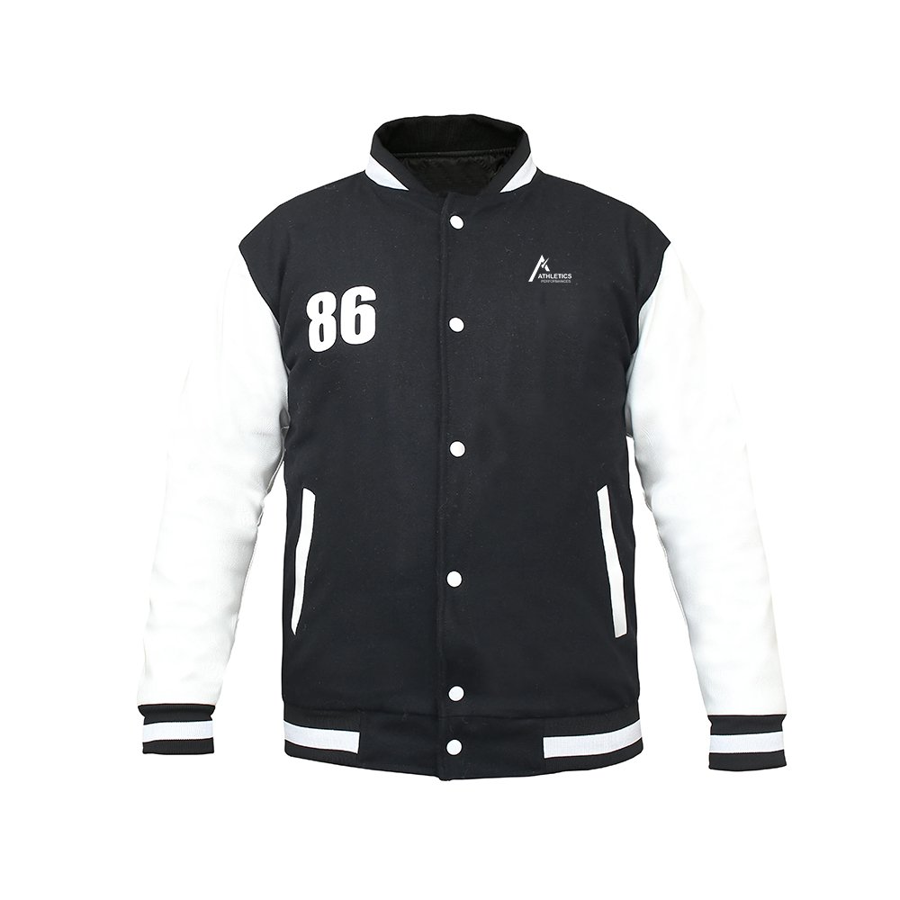 A varsity jacket, also known as a letterman jacket, is a stylish outerwear piece originally worn by American high school and college athletes. It typically features a wool body with leather or faux leather sleeves, ribbed cuffs, waistband, and a snap-button front. Varsity jackets often have embroidered patches or letters representing schools or teams. They offer a sporty, retro look and are perfect for casual and streetwear fashion.
